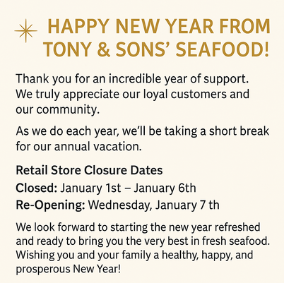 copyright © Tony & Sons' Seafood | PRIVACY POLICY