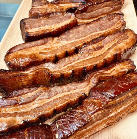 Have you tried our DOUBLE SMOKED SLAB BACON?? USDA inspected Pennsylvania raised, all natural pork. Slow Smoked, not one time, but 2 times! Fully cooked and ready to eat as is or sliced, cubed & chunked, heat and serve. May be substituted for pork belly, or pancetta. A must try!!